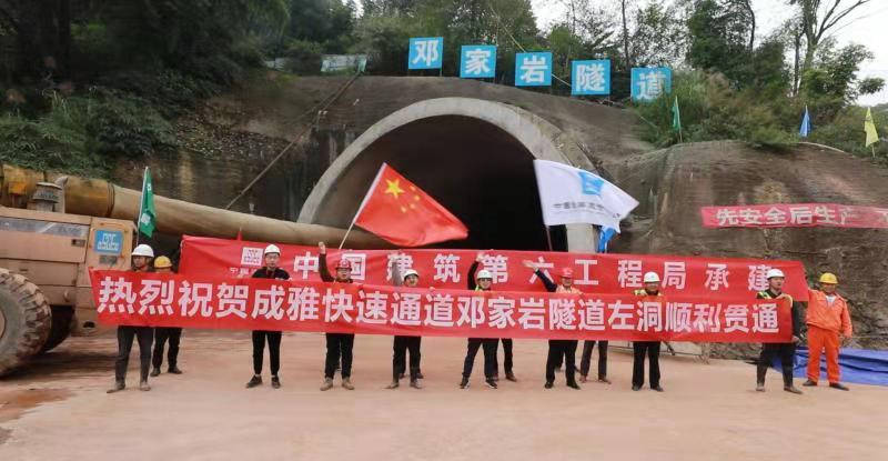 10月23日上午,成雅快速通道控制性工程——鄧家?guī)r隧道左洞順利貫通。鄧家?guī)r大橋施工也在加快推進(jìn),左線墩柱已完工,右線墩柱預(yù)計(jì)11月中旬完工。
