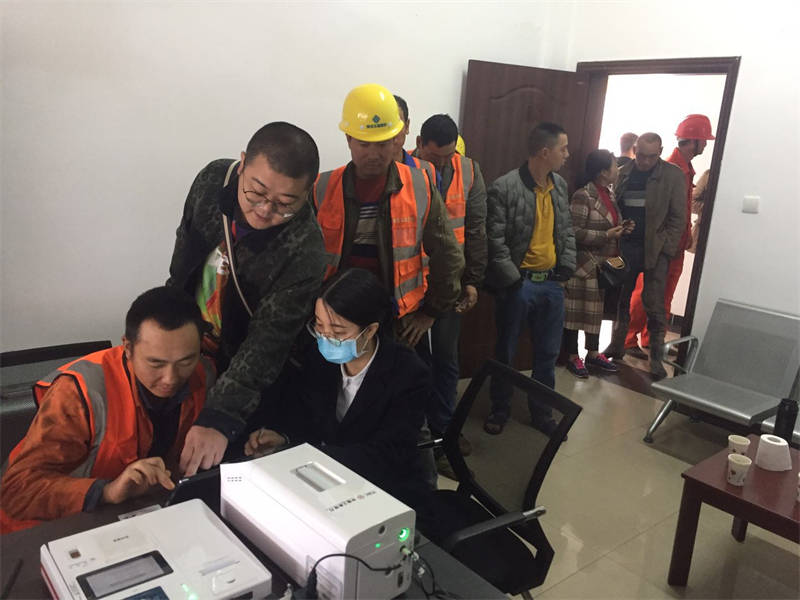 駐地現(xiàn)場(chǎng),工作人員為農(nóng)民工登記、拍照、身份核對(duì)、采集、復(fù)印基本信息,建立動(dòng)態(tài)臺(tái)賬,從工資專用賬戶注冊(cè)、簽字、按手印確認(rèn)到工資卡領(lǐng)取進(jìn)行全過程跟蹤監(jiān)督,并在第一時(shí)間幫助他們激活銀行卡。同時(shí)記錄影像資料以便保存、備查,杜絕了冒領(lǐng)、漏發(fā)的現(xiàn)象。