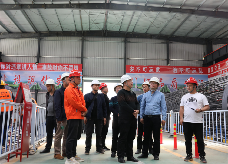 羅倫全一行通過聽取介紹、實(shí)地查看、座談交流的方式,重點(diǎn)就項(xiàng)目部駐地規(guī)范化、精細(xì)化建設(shè),鋼筋加工場、拌合站、隧道洞口等主要施工場地的場地規(guī)劃、安全設(shè)施布置,鋼筋加工場和拌合站智能化、標(biāo)準(zhǔn)化作業(yè),隧道工程科學(xué)化施工、黨建文化生活、勞務(wù)管理等進(jìn)行全面學(xué)習(xí)交流。