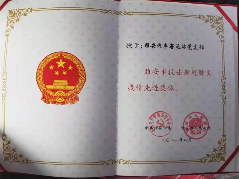 今年4月,蜀通公司雅安汽車客運(yùn)站黨支部被市委、市政府評為“雅安市抗擊新冠肺炎疫情先進(jìn)集體”,蜀通公司名山車站曹流滔同志被表彰為“雅安市抗擊新冠肺炎疫情先進(jìn)個人”。