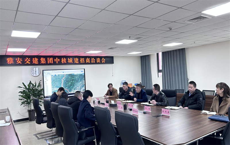 中核城建公司副總經(jīng)理兼市場(chǎng)開發(fā)部經(jīng)理王強(qiáng)、總經(jīng)理助理?xiàng)罾,雅安交建集團(tuán)副總經(jīng)理丁春,以及雙方相關(guān)部門負(fù)責(zé)人參洽談。