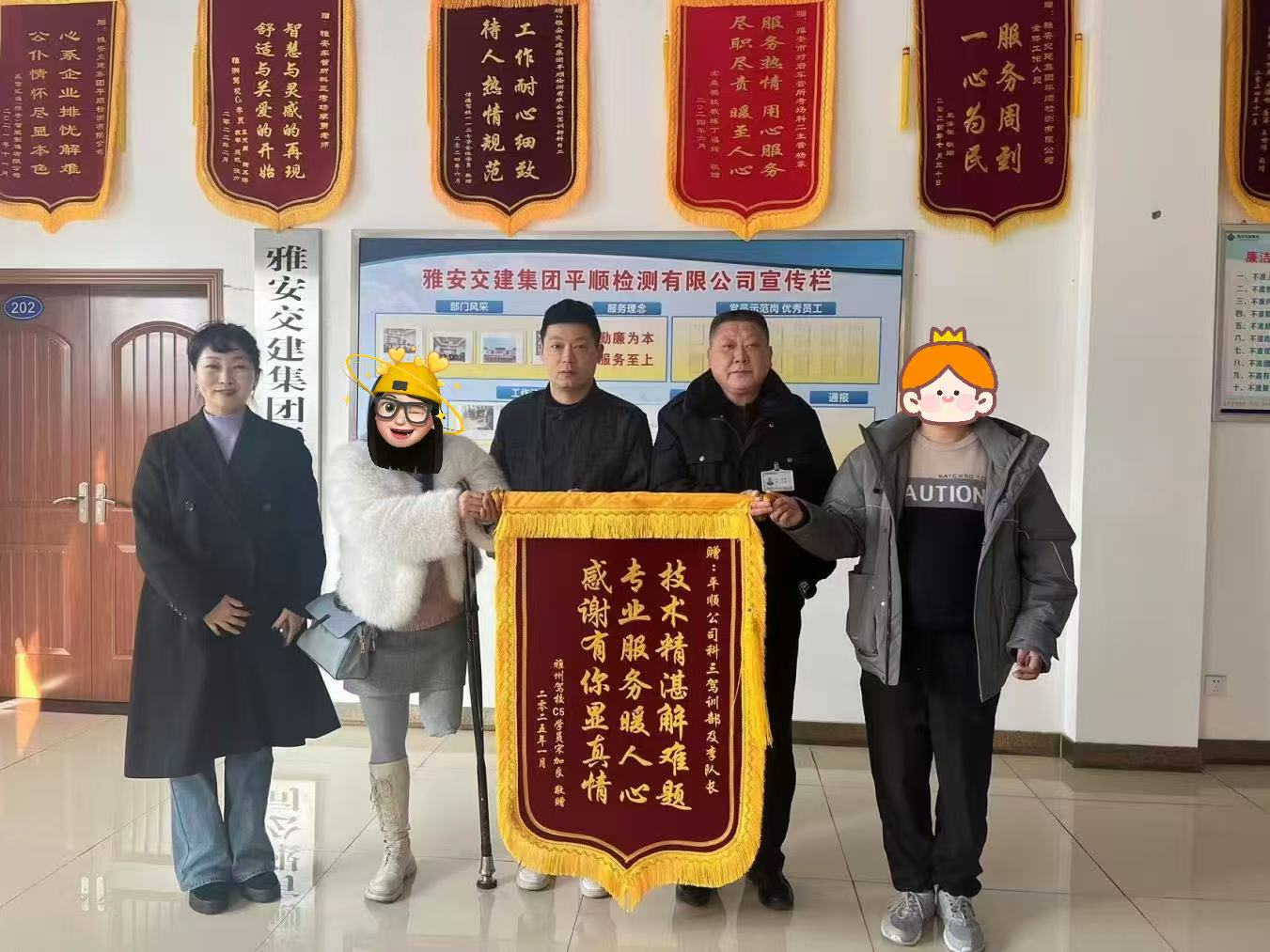 “合格了,感謝你們給予我貼心的照顧和一路陪伴,讓我順利通過考試,幫助我完成了人生中的一件大事!”近日,雅州駕校殘疾考生宋女士將一面印有“技術精湛解難題 專業(yè)服務暖人心 感謝有你顯真情”字樣的錦旗送到了平順公司,對工作人員為他們提供熱情、周到的服務表示感謝。
