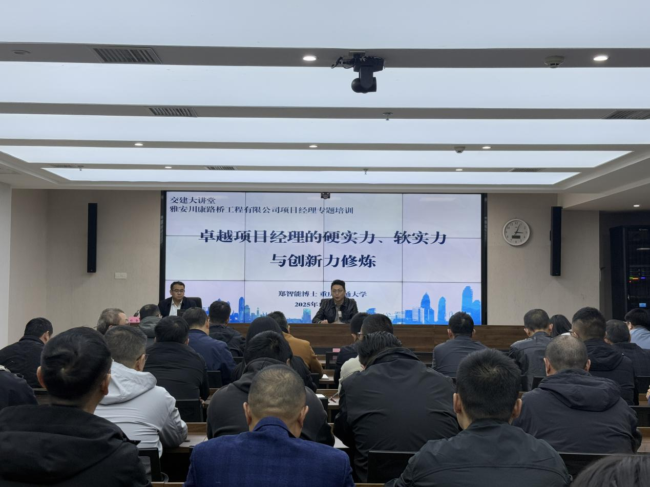 本次培訓特邀重慶交大工學博士、副教授、碩士生導師鄭智能老師,以“優(yōu)秀項目經(jīng)理的硬實力、軟實力與創(chuàng)新力修煉”為主題,聚焦行業(yè)前沿動態(tài)與實戰(zhàn)應用,旨在幫助項目經(jīng)理拓寬管理視野、夯實核心技能,為公司轉型升級和經(jīng)營目標的順利實現(xiàn)提供有力的人才支撐。