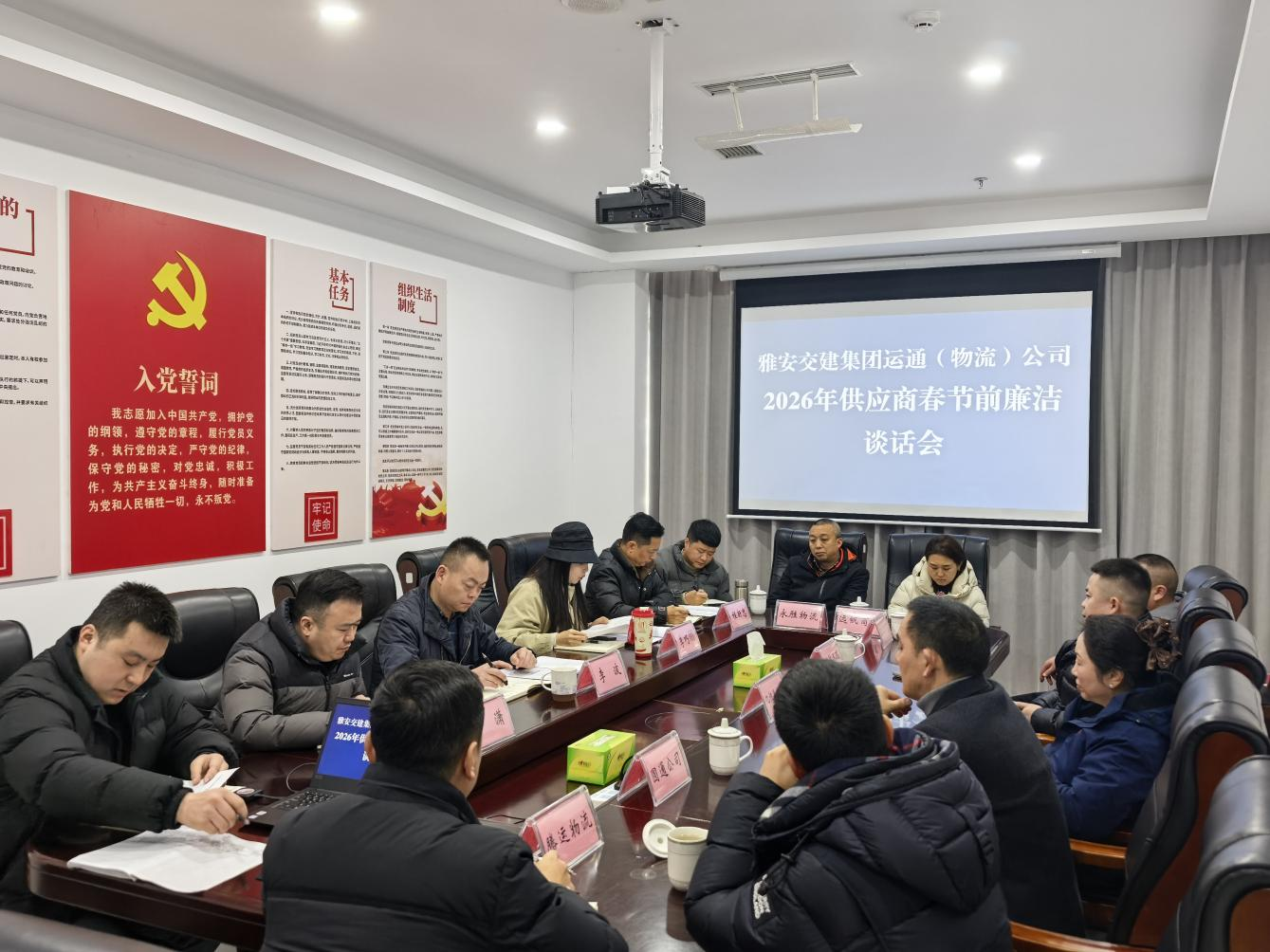 2月5日,雅安交建集團(tuán)運通(物流)公司組織開展節(jié)前廉潔專題系列活動,公司班子成員、全體員工及合作商代表分時段參會。活動聚焦物流貿(mào)易與合作特點,通過“學(xué)部署、明制度、剖案例、促共建”相結(jié)合的方式,推動廉潔紀(jì)律內(nèi)化于心、外化于行,切實筑牢春節(jié)前廉潔防線。