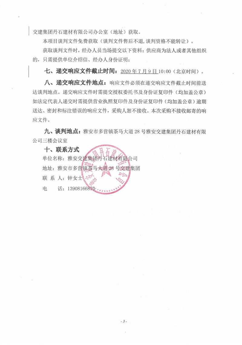 雅安交建集團(tuán)丹石建材有限公司砂石加工系統(tǒng)粗碎車(chē)間膠帶機(jī)變更工程競(jìng)爭(zhēng)性談判邀請(qǐng)公告
