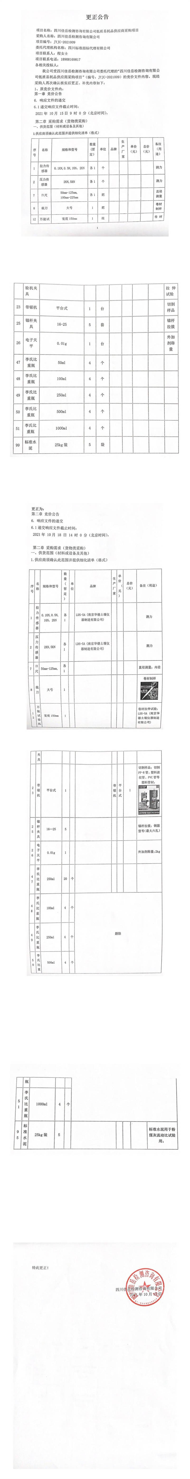 四川佳岳檢測咨詢有限公司低質(zhì)易耗品供應(yīng)商采購項(xiàng)目更正公告