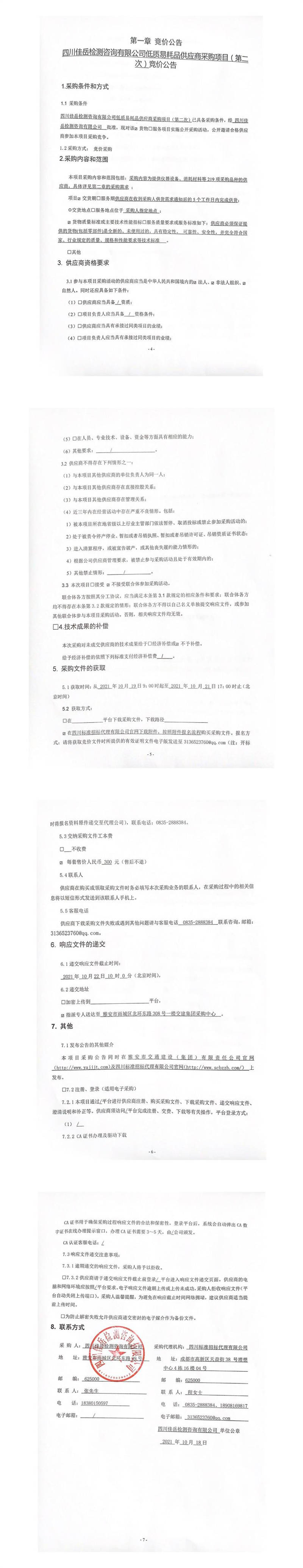 四川佳岳檢測(cè)咨詢有限公司低質(zhì)易耗品供應(yīng)商采購項(xiàng)目(第二次)競(jìng)價(jià)公告