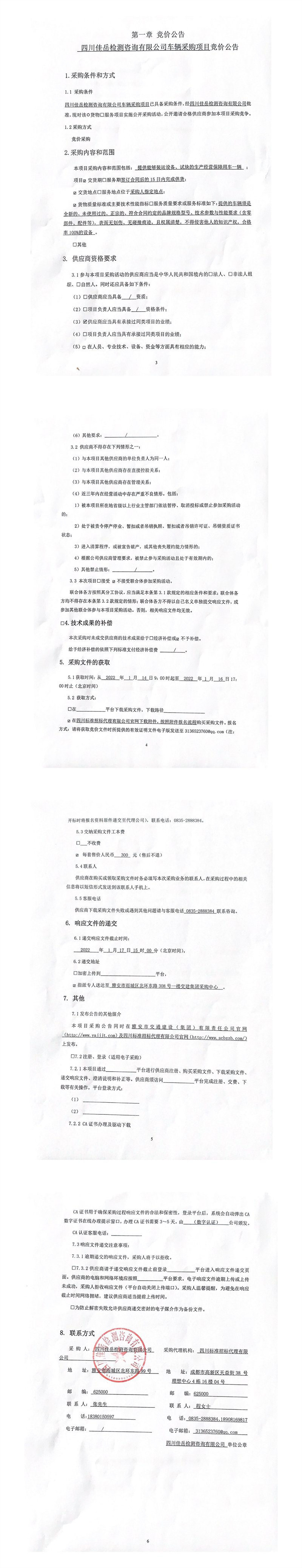 四川佳岳檢測咨詢有限公司車輛采購項目競價公告