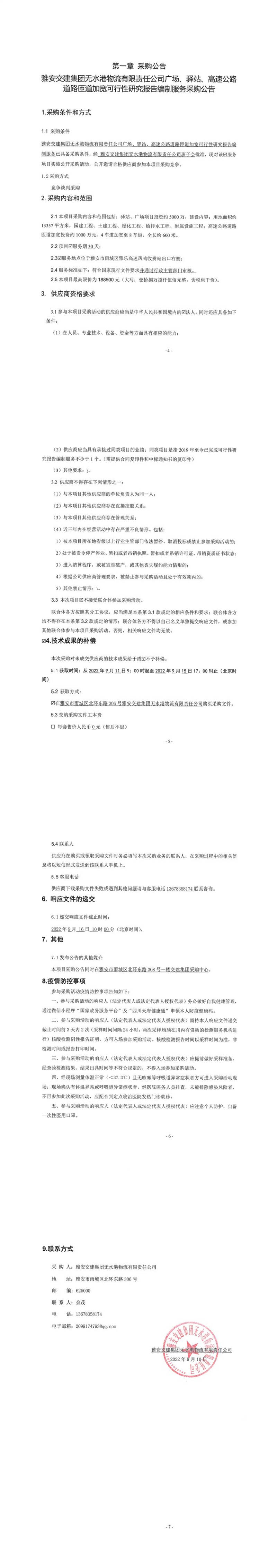 雅安交建集團(tuán)無水港物流有限責(zé)任公司廣場、驛站、高速公路道路匝道加寬安全預(yù)評價、安全設(shè)施設(shè)計(jì)、環(huán)境影響評價、水土保持方案編制服務(wù)采購公告