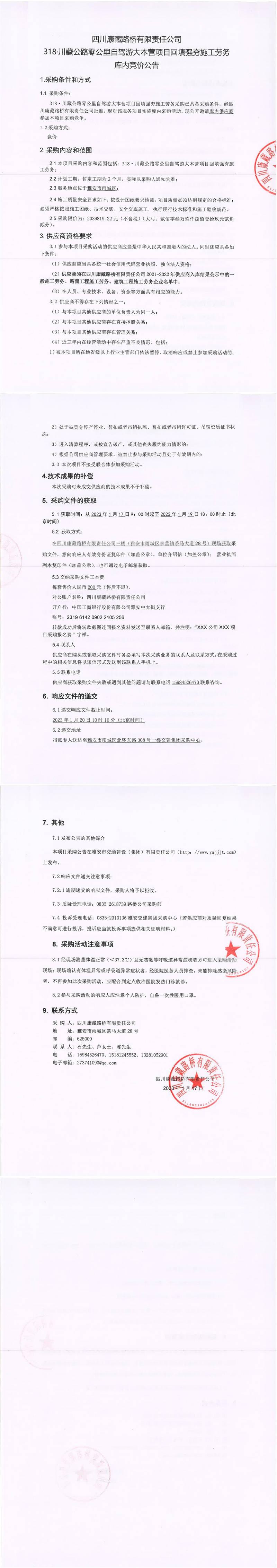 四川康藏路橋有限責(zé)任公司318.川藏公路零公里自駕游大本營(yíng)項(xiàng)目回填強(qiáng)夯施工勞務(wù)庫(kù)內(nèi)競(jìng)價(jià)公告