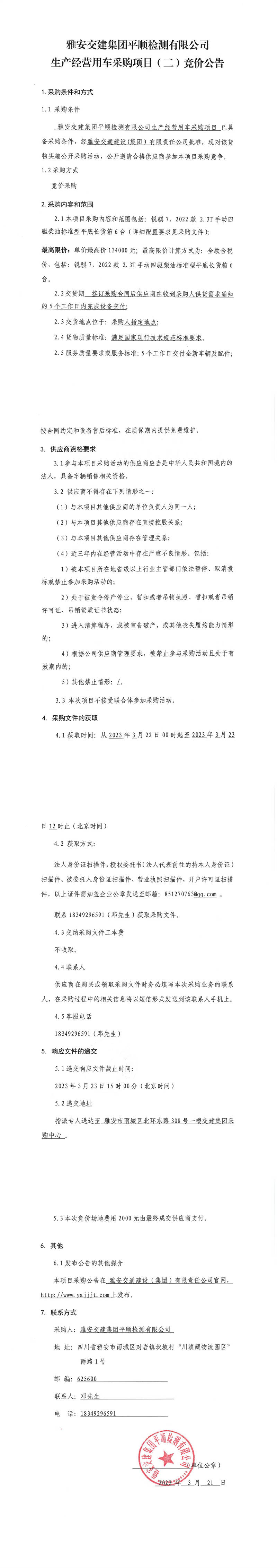 雅安交建集團(tuán)平順檢測(cè)有限公司平順公司生產(chǎn)經(jīng)營用車采購項(xiàng)目(二)競(jìng)價(jià)公告