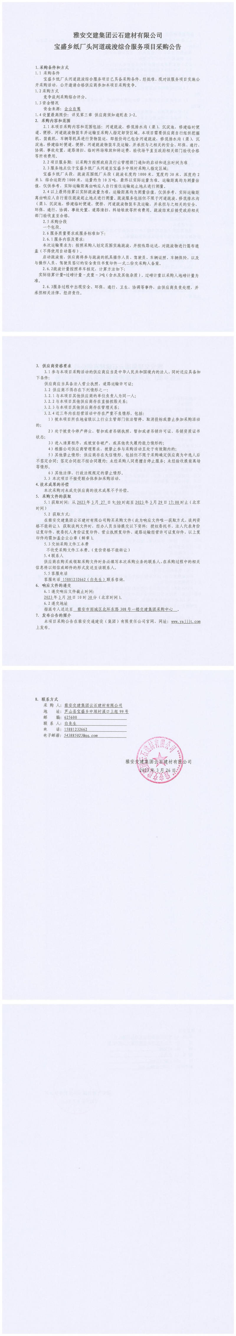 雅安交建集團(tuán)云石建材有限公司寶盛鄉(xiāng)紙廠頭河道疏浚綜合服務(wù)項(xiàng)目采購公告