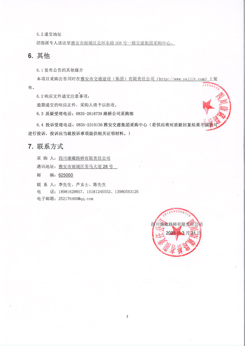 四川康藏路橋有限責任公司省道104雨城區(qū)坪石至回龍(洪雅界)段改建工程項目支座及伸縮縫采購結果公示