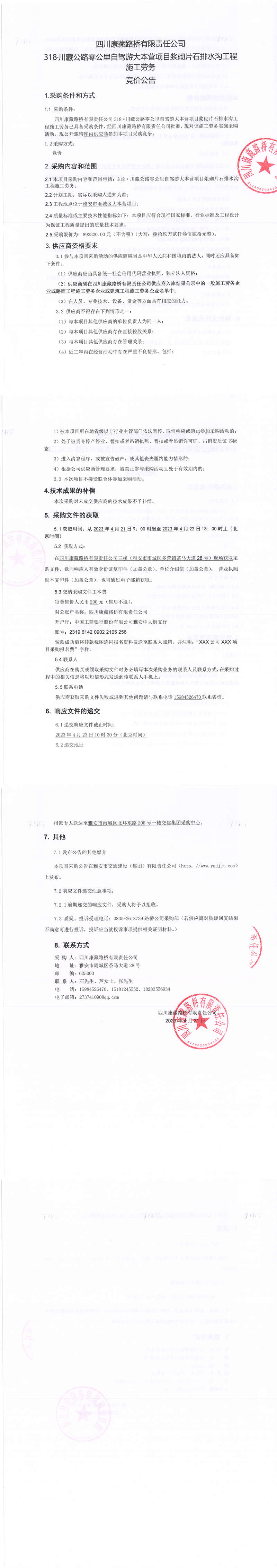 四川康藏路橋有限責(zé)任公司318·川藏公路零公里自駕游大本營項目漿砌片石排水溝工程施工勞務(wù)公告