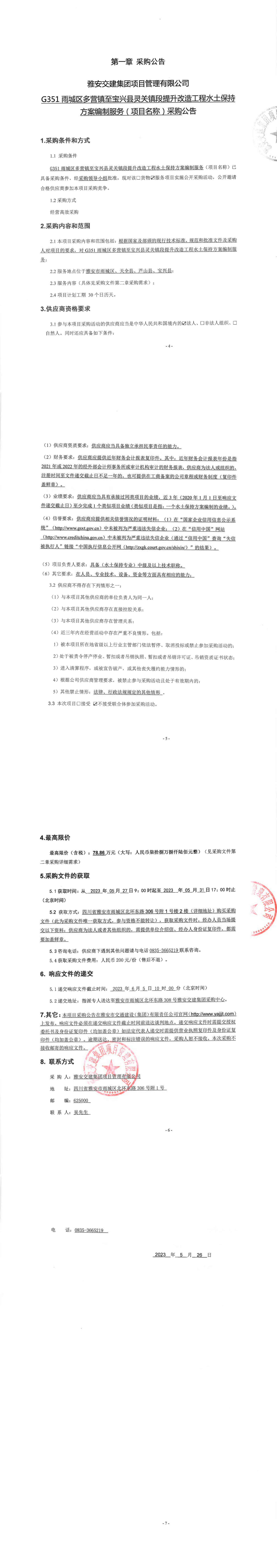 雅安交建集團(tuán)項(xiàng)目管理有限公司G351雨城區(qū)多營(yíng)鎮(zhèn)至寶興縣靈關(guān)鎮(zhèn)段提升改造工程水土保持方案編制服務(wù)(項(xiàng)目名稱(chēng))采購(gòu)公告