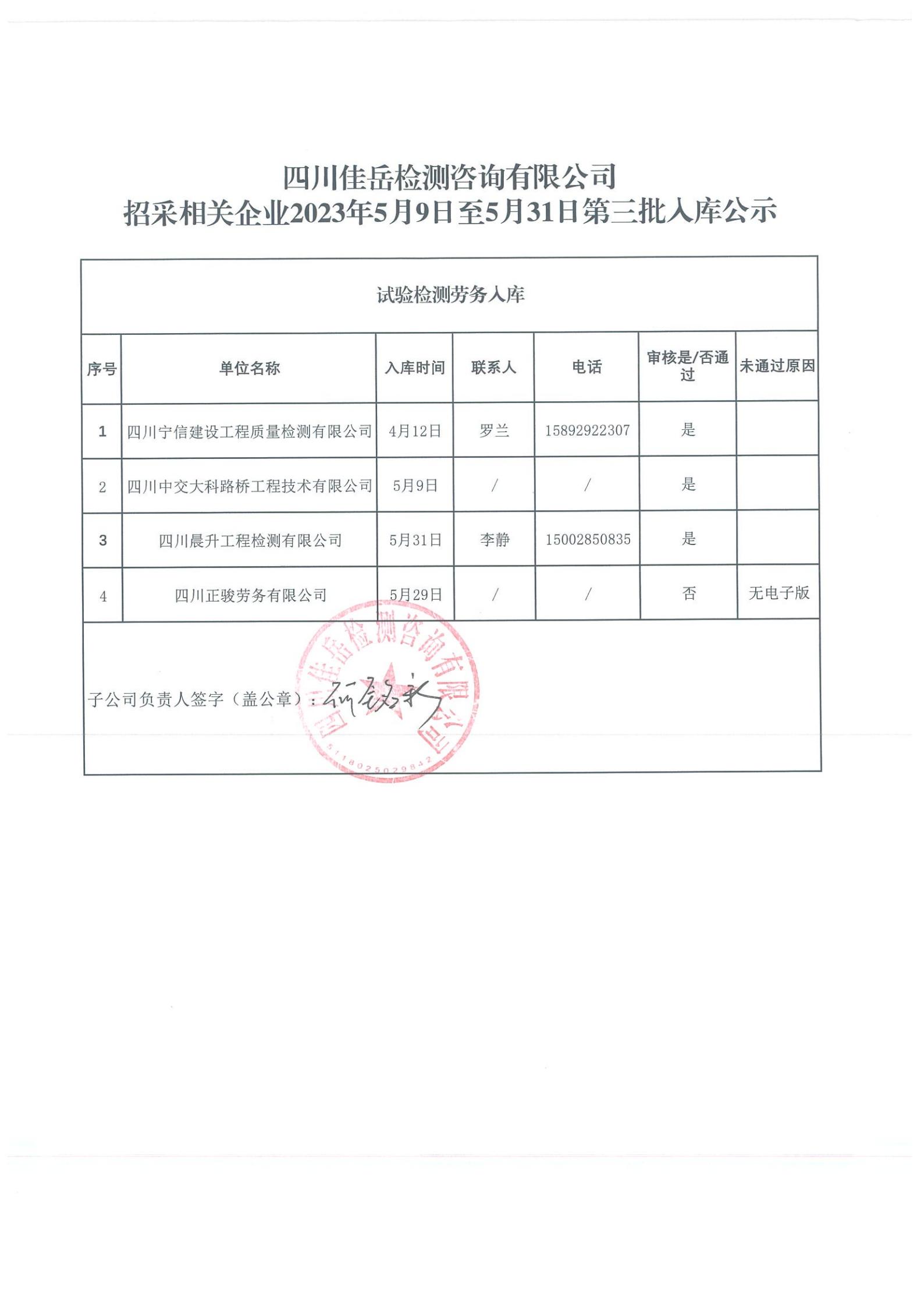 四川佳岳檢測(cè)咨詢有限公司(試驗(yàn)檢測(cè)勞務(wù)供應(yīng)商庫)2023年5月9日至5月31日第三批入庫結(jié)果公示