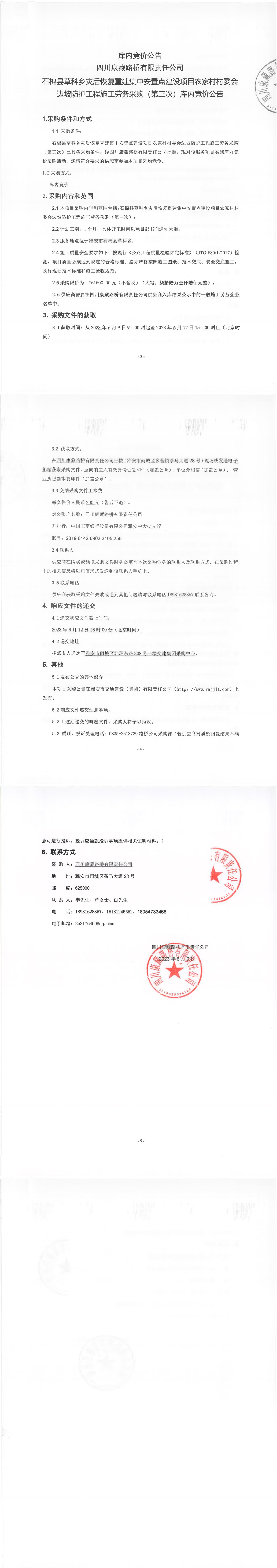 四川康藏路橋有限責(zé)任公司石棉縣草科鄉(xiāng)災(zāi)后恢復(fù)重建集中安置點(diǎn)建設(shè)項(xiàng)目農(nóng)家村村委會邊坡防護(hù)工程施工勞務(wù)采購(第三次)庫內(nèi)競價(jià)公告