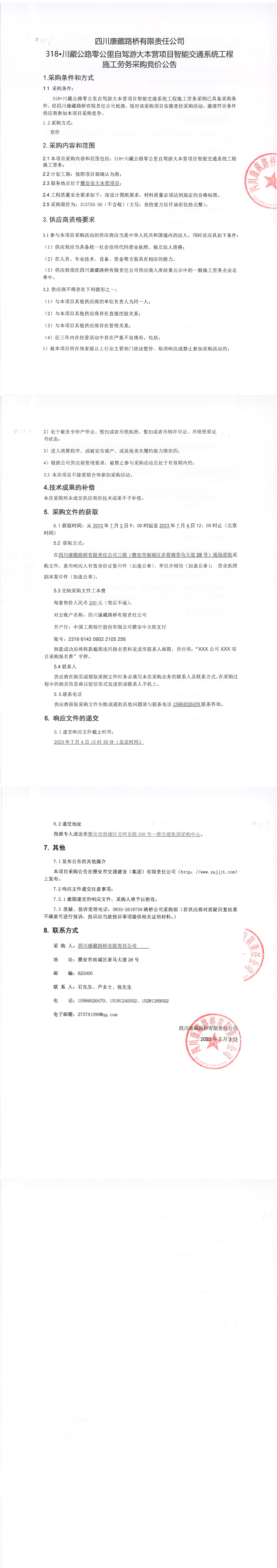 四川康藏路橋有限責任公司318·川藏公路零公里自駕游大本營項目智能交通系統(tǒng)工程施工勞務采購公告