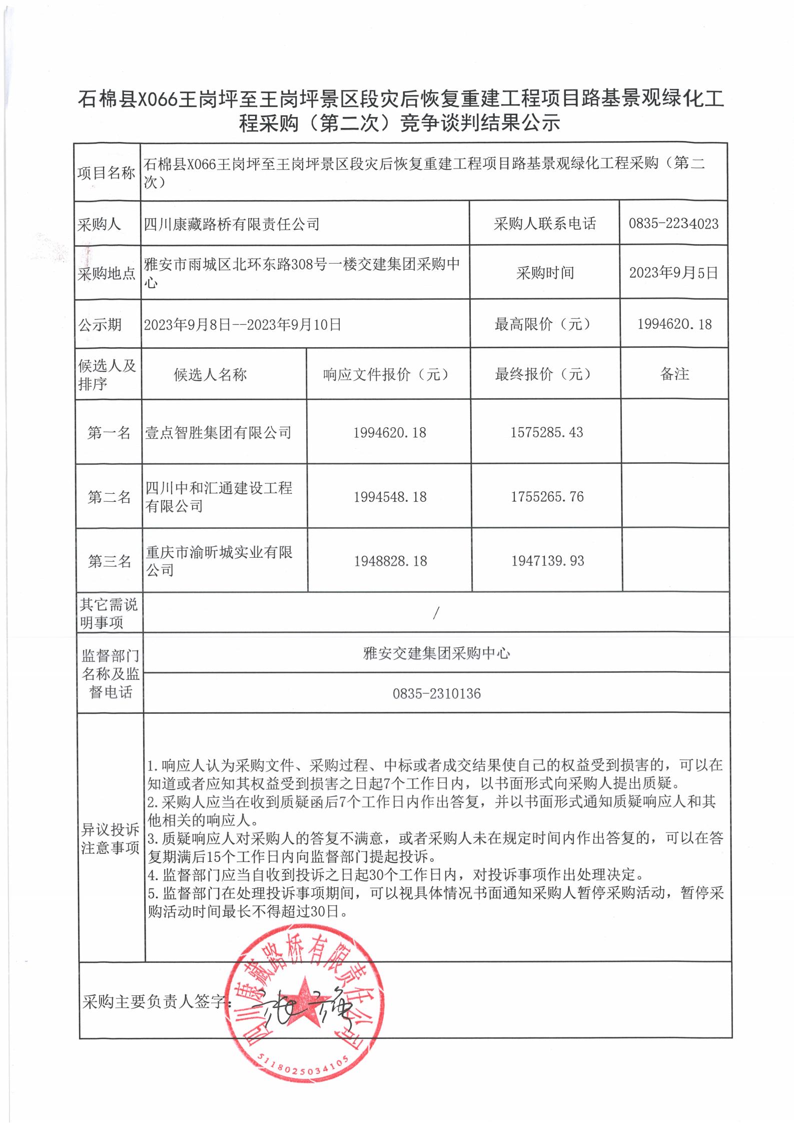 四川康藏路橋有限責(zé)任公司石棉縣X066王崗坪至王崗坪景區(qū)段災(zāi)后恢復(fù)重建工程項(xiàng)目路基景觀綠化工程施工采購(第二次)競爭談判結(jié)果公示