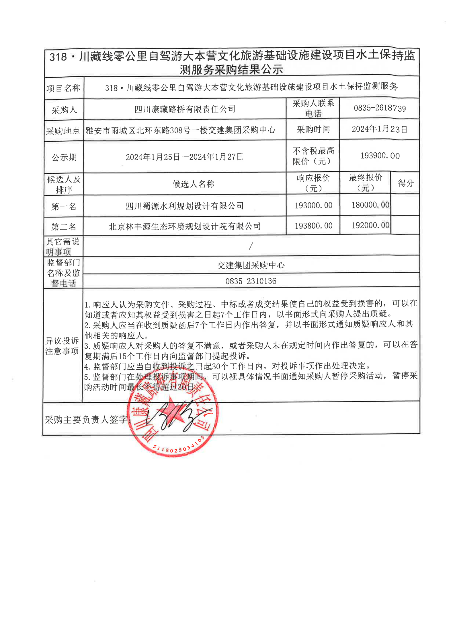 四川康藏路橋有限責(zé)任公司318·川藏線零公里自駕游大本營(yíng)文化旅游基礎(chǔ)設(shè)施建設(shè)項(xiàng)目水土保持監(jiān)測(cè)服務(wù)采購結(jié)果公示