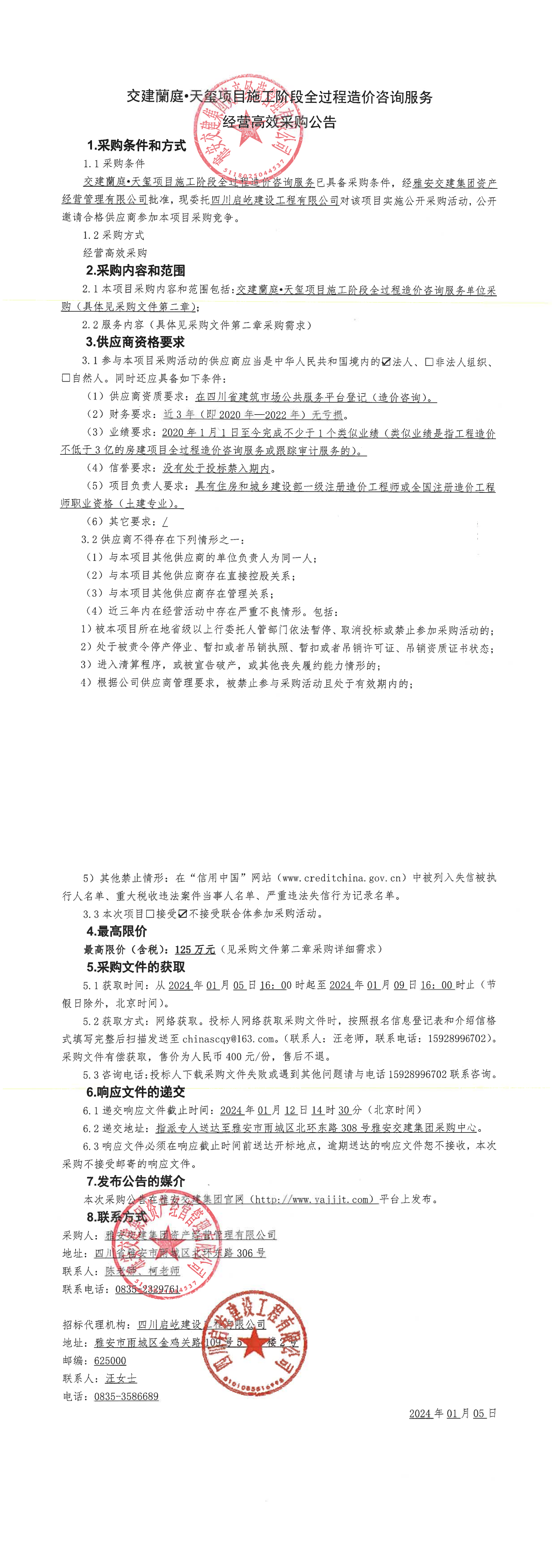 交建蘭庭·天璽項目施工階段全過程造價咨詢服務經(jīng)營高效采購公告