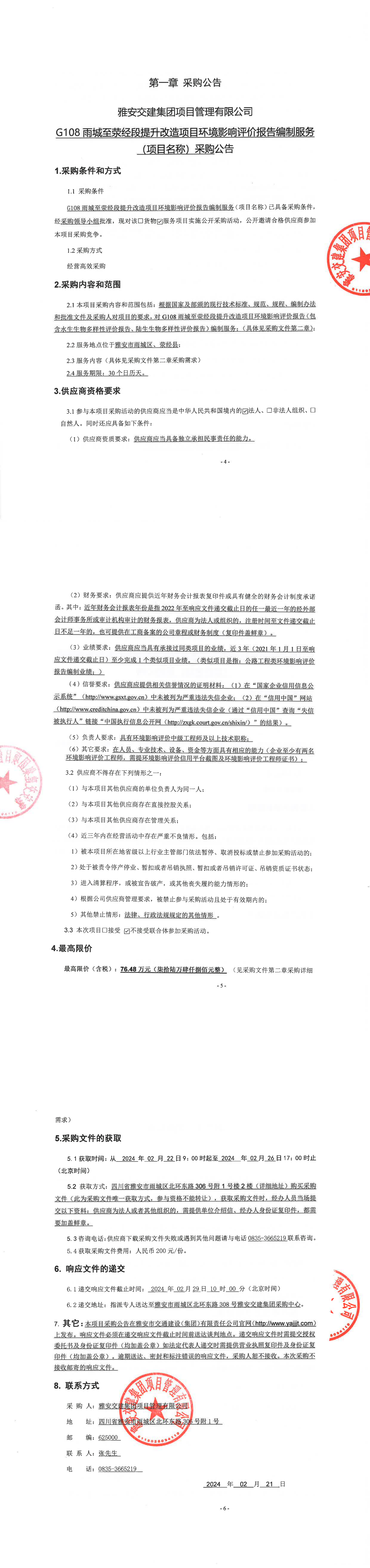 雅安交建集團(tuán)項(xiàng)目管理有限公司G108雨城至滎經(jīng)段提升改造項(xiàng)目環(huán)境影響評價(jià)報(bào)告編制服務(wù)(項(xiàng)目名稱)采購公告