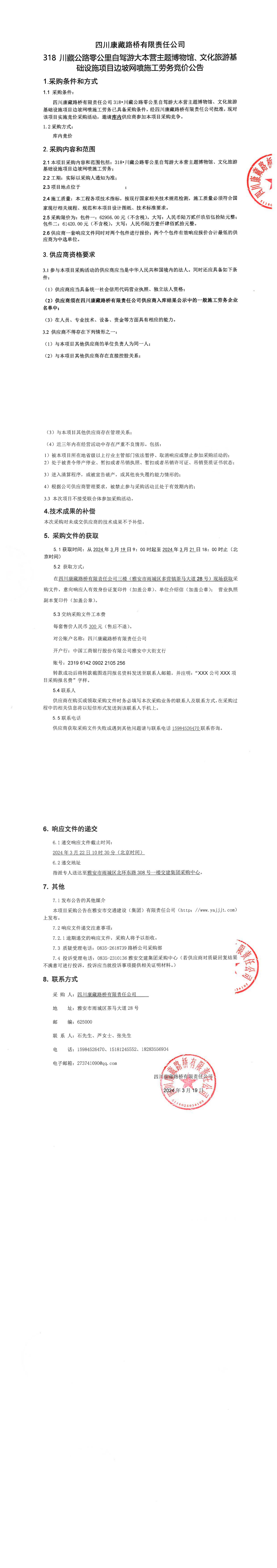 四川康藏路橋有限責(zé)任公司318•川藏公路零公里自駕游大本營(yíng)主題博物館、文化旅游基礎(chǔ)設(shè)施項(xiàng)目邊坡網(wǎng)噴施工勞務(wù)采購(gòu)公告