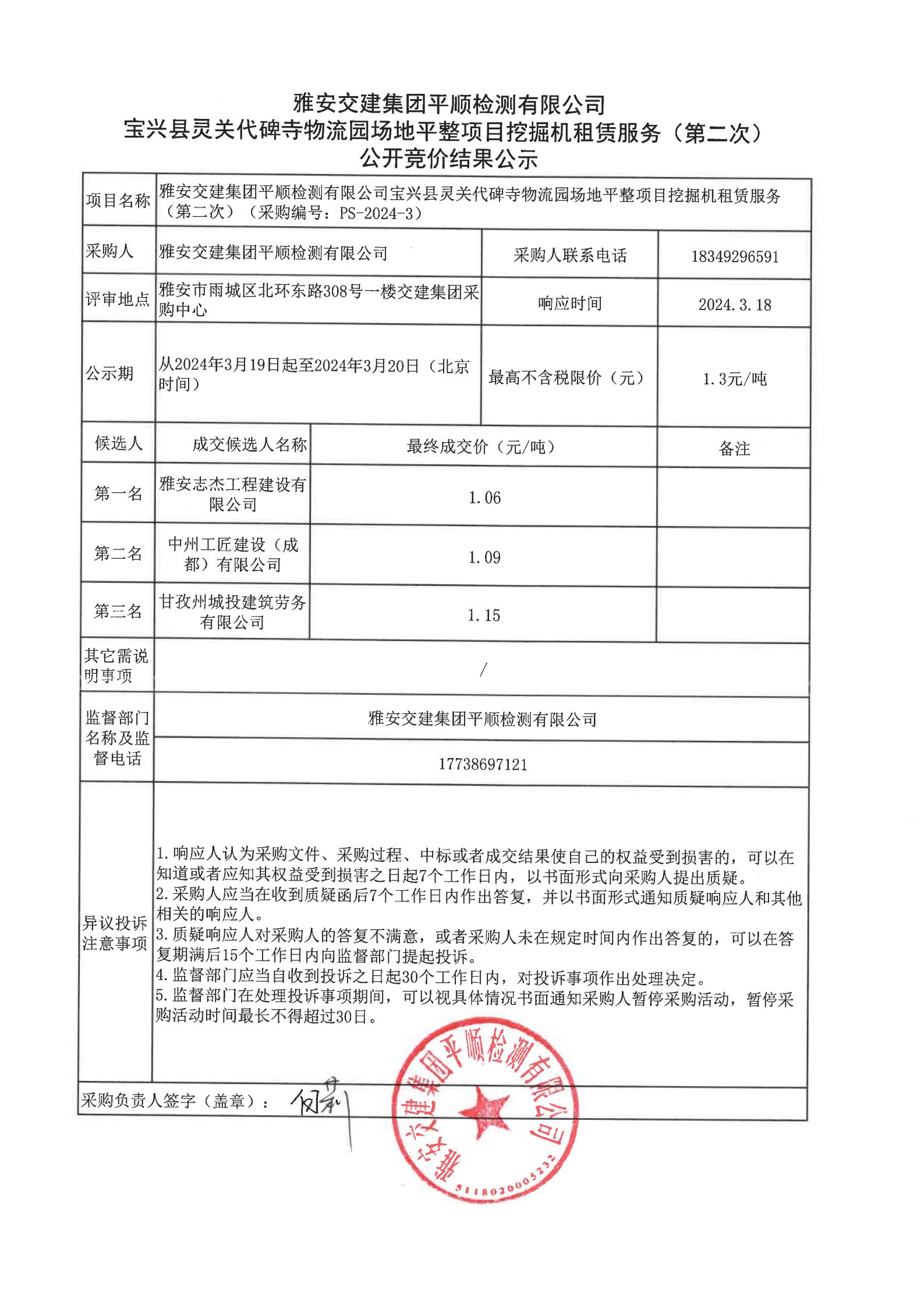雅安交建集團(tuán)平順檢測有限公司寶興縣靈關(guān)代碑寺物流園場地平整項(xiàng)目挖掘機(jī)租賃服務(wù)(第二次)競價(jià)結(jié)果公示