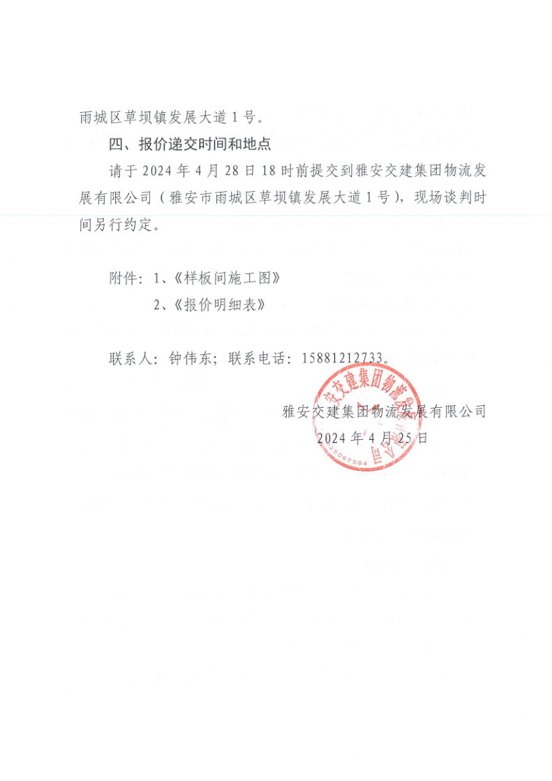 雅安交建集團(tuán)物流發(fā)展有限公司雅安市鳳鳴綜合物流園項(xiàng)目供應(yīng)鏈管理中心樣板間軟裝方案設(shè)計(jì)和清單編制服務(wù)采購市場調(diào)查詢價(jià)函