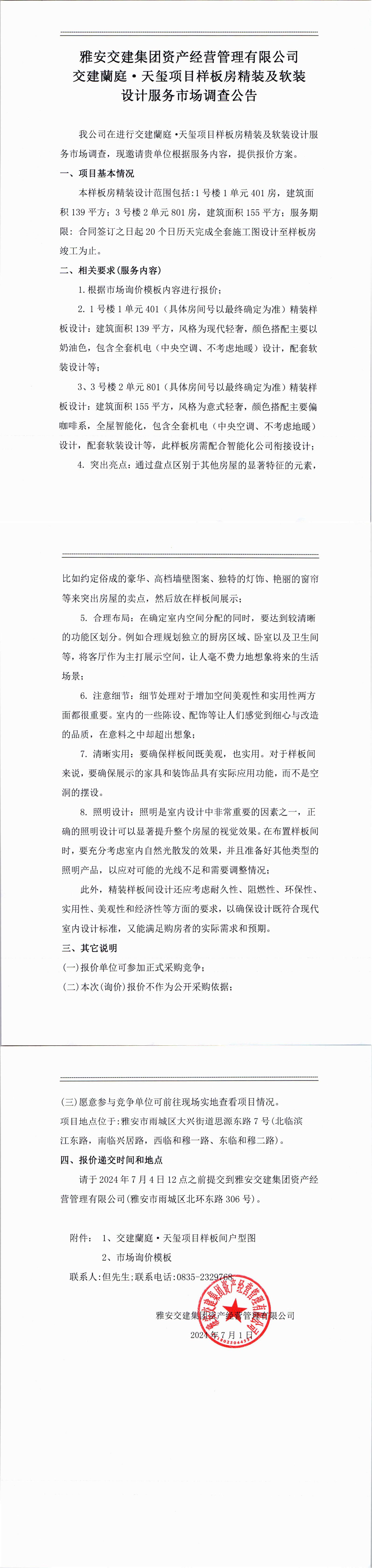 雅安交建集團資產(chǎn)經(jīng)營管理有限公司交建蘭庭·天璽項目樣板房精裝及軟裝設(shè)計服務(wù)市場調(diào)查公告