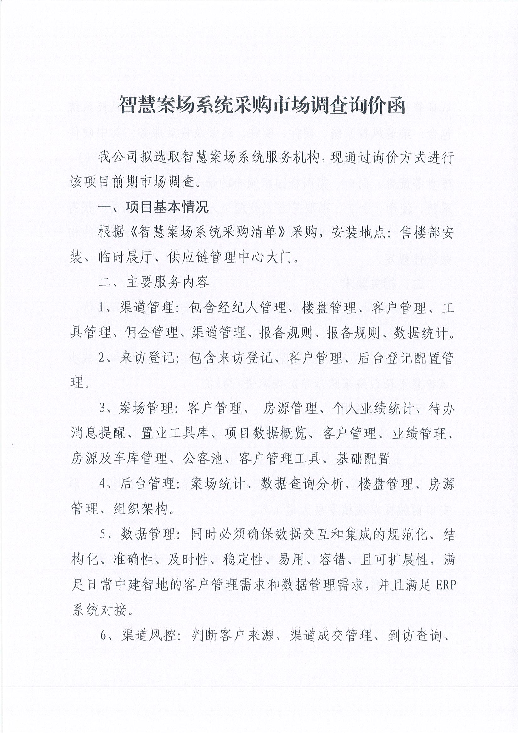 雅安交建集團(tuán)物流發(fā)展有限公司智慧案場系統(tǒng)采購市場調(diào)查詢價函