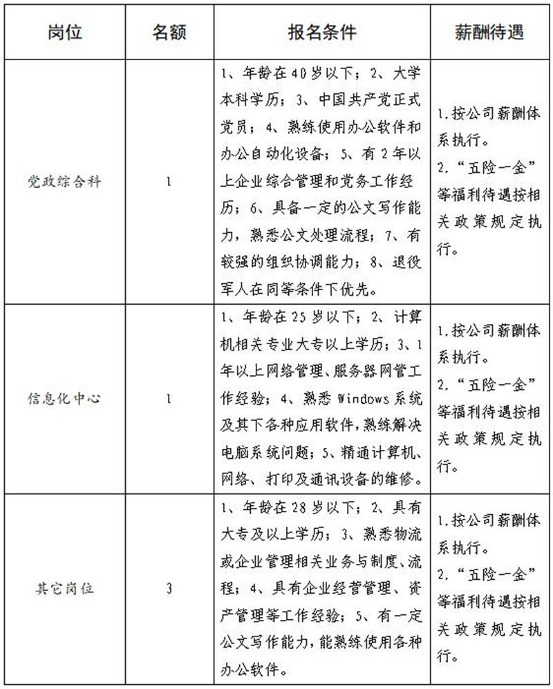 雅安交建集團(tuán)無水港物流有限責(zé)任公司主要從事雅安市快遞物流分撥、集裝箱掏拼箱作業(yè)、倉(cāng)儲(chǔ)等業(yè)務(wù),F(xiàn)根據(jù)公司業(yè)務(wù)發(fā)展需要,雨城分公司擬招聘5名工作人員,現(xiàn)將有關(guān)事項(xiàng)公告如下: