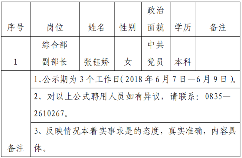 根據(jù)雅安市交通建設(集團)有限責任公司人才選聘實施辦法(試行)第十四條的規(guī)定:黨政機關事業(yè)單位人員選拔程序,以組織選拔方式進行,主要是溝通推薦、組織考察、會議研究、任前公示、研究聘用。雅安交建集團平順檢測有限公司研究確定以下1名擬聘用人員,現(xiàn)公示名單如下: