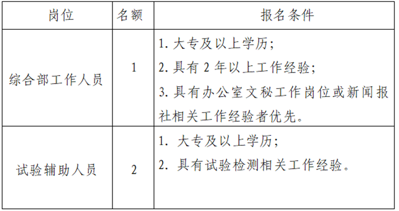 雅安交建集團工程檢測有限公司是雅安市交通建設(集團)有限責任公司下屬子公司。主要從事主要從事公路、橋梁及隧道等的檢測等業(yè)務,F(xiàn)根據(jù)公司業(yè)務發(fā)展需要,擬招聘3名工作人員,現(xiàn)將有關事項公告如下: