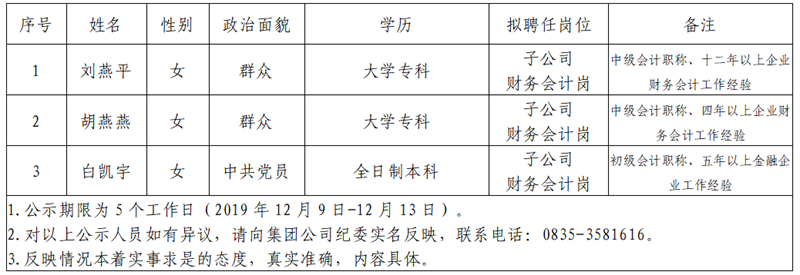 根據雅安市交通建設(集團)有限責任公司招聘公告,經公開報名、資格初審、筆試、面試、等環(huán)節(jié),現(xiàn)將以下3名擬聘用人員予以公示: