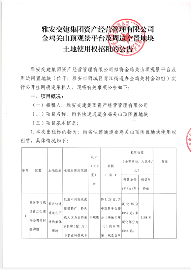 蜀通公司關(guān)于閑置資產(chǎn)掛網(wǎng)招租的公告
