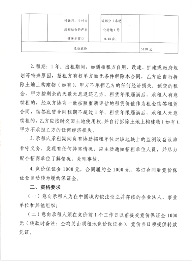 金雞關(guān)山頂觀景平臺(tái)競(jìng)價(jià)招租公告