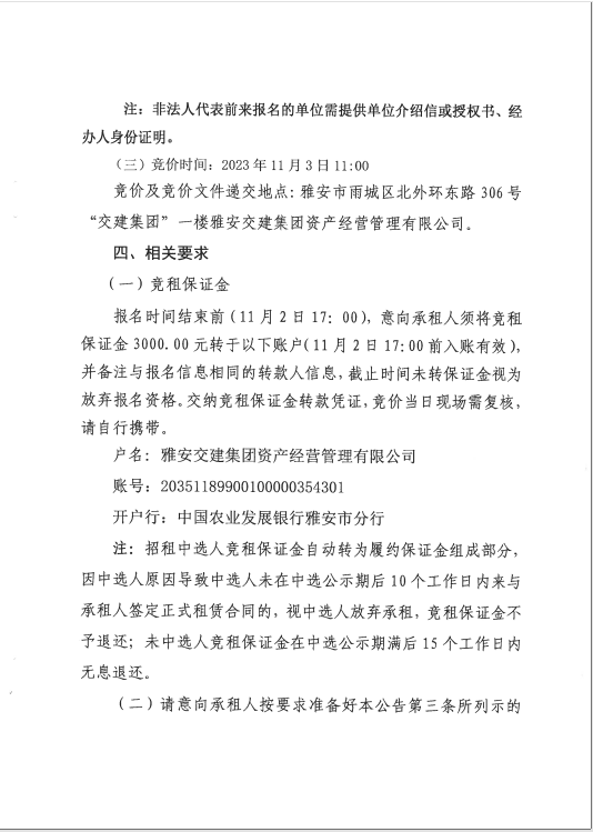 雅安交建資產(chǎn)經(jīng)營管理有限公司雨名快速通道黑碾子場地招租公告