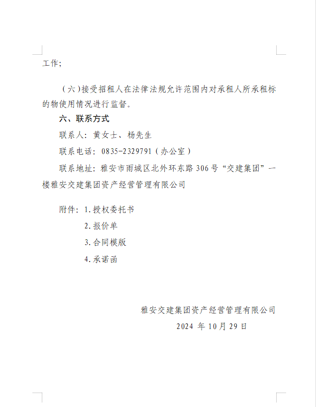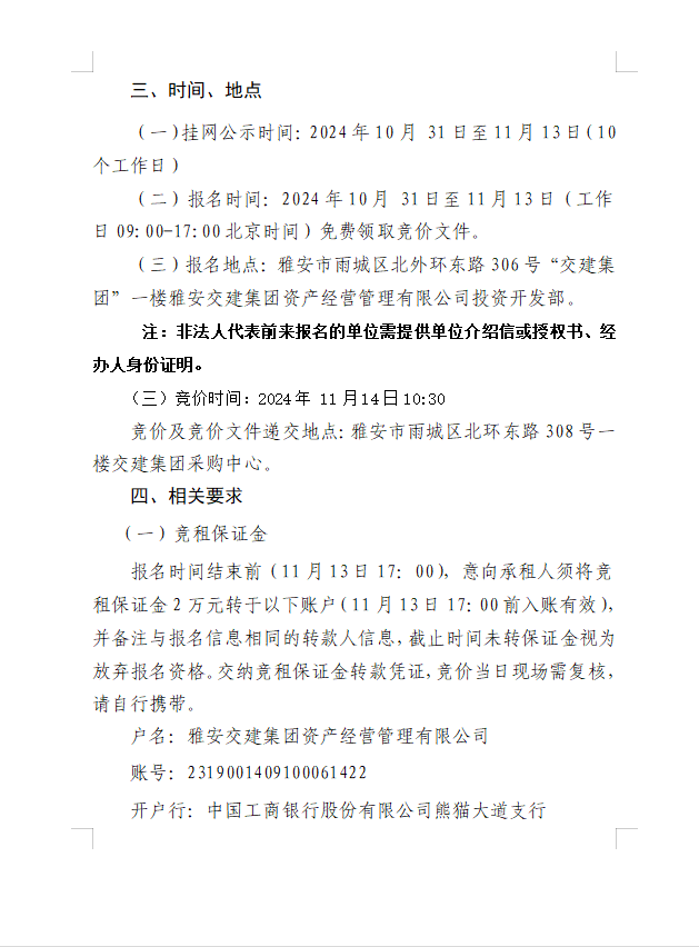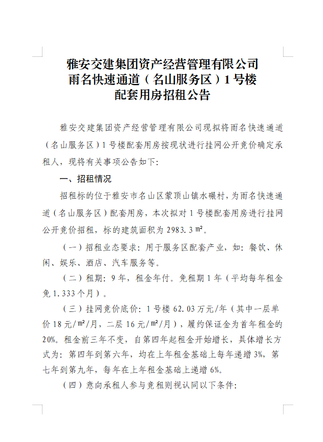 雅安交建集團(tuán)資產(chǎn)經(jīng)營管理有限公司雨名快速通道(名山服務(wù)區(qū))1號(hào)樓配套用房招租公告