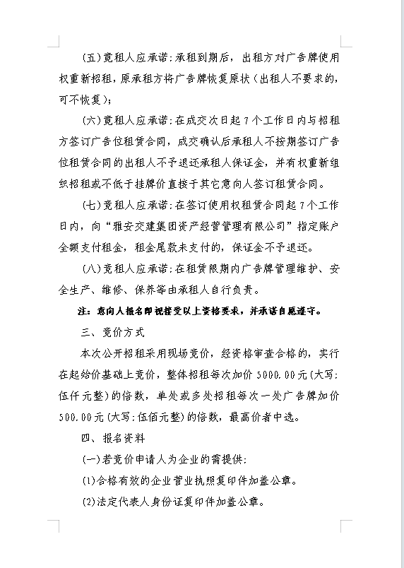 雅安交建集團(tuán)資產(chǎn)經(jīng)營管理有限公司關(guān)于戶外廣告位競價(jià)招租的公告附件