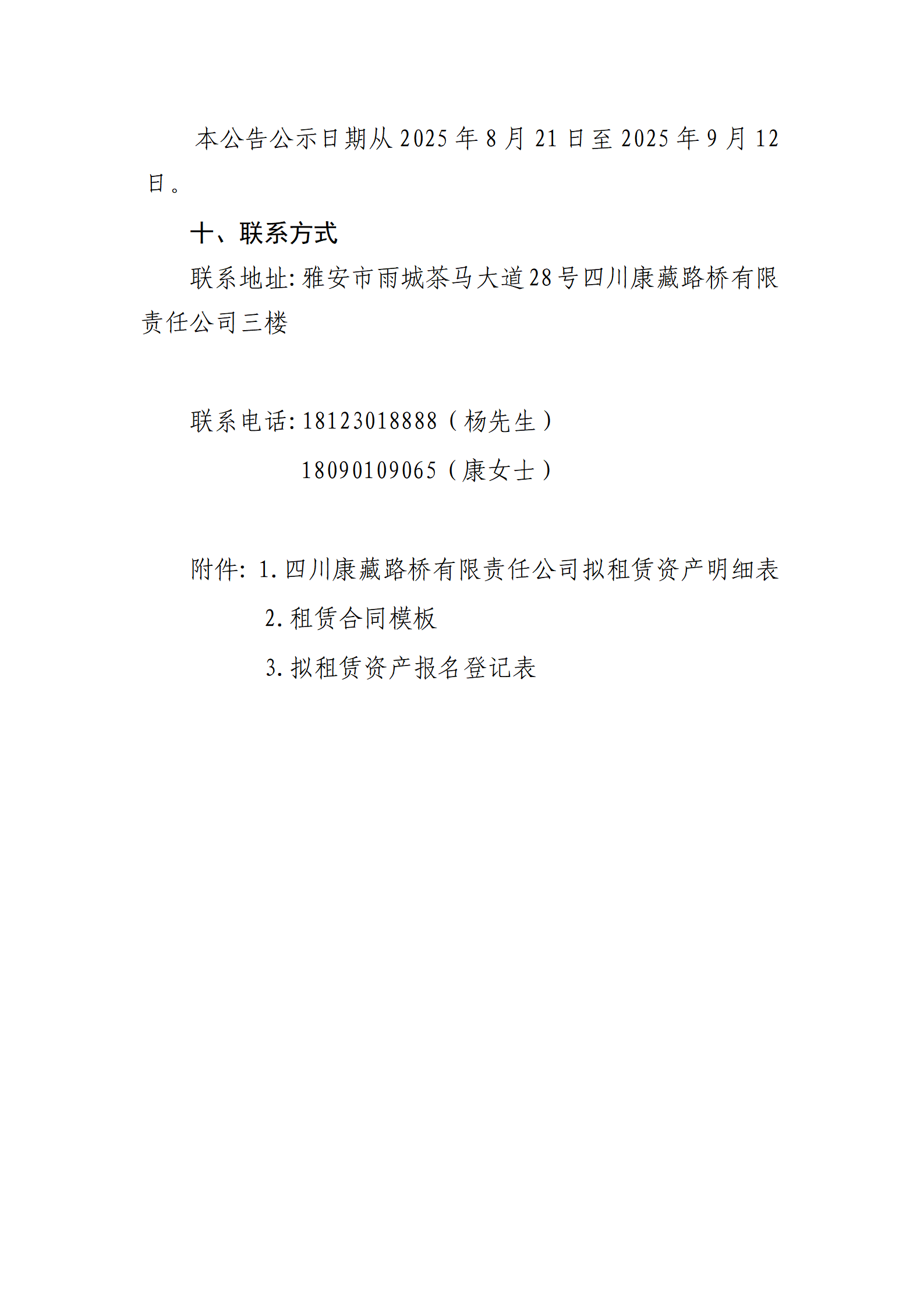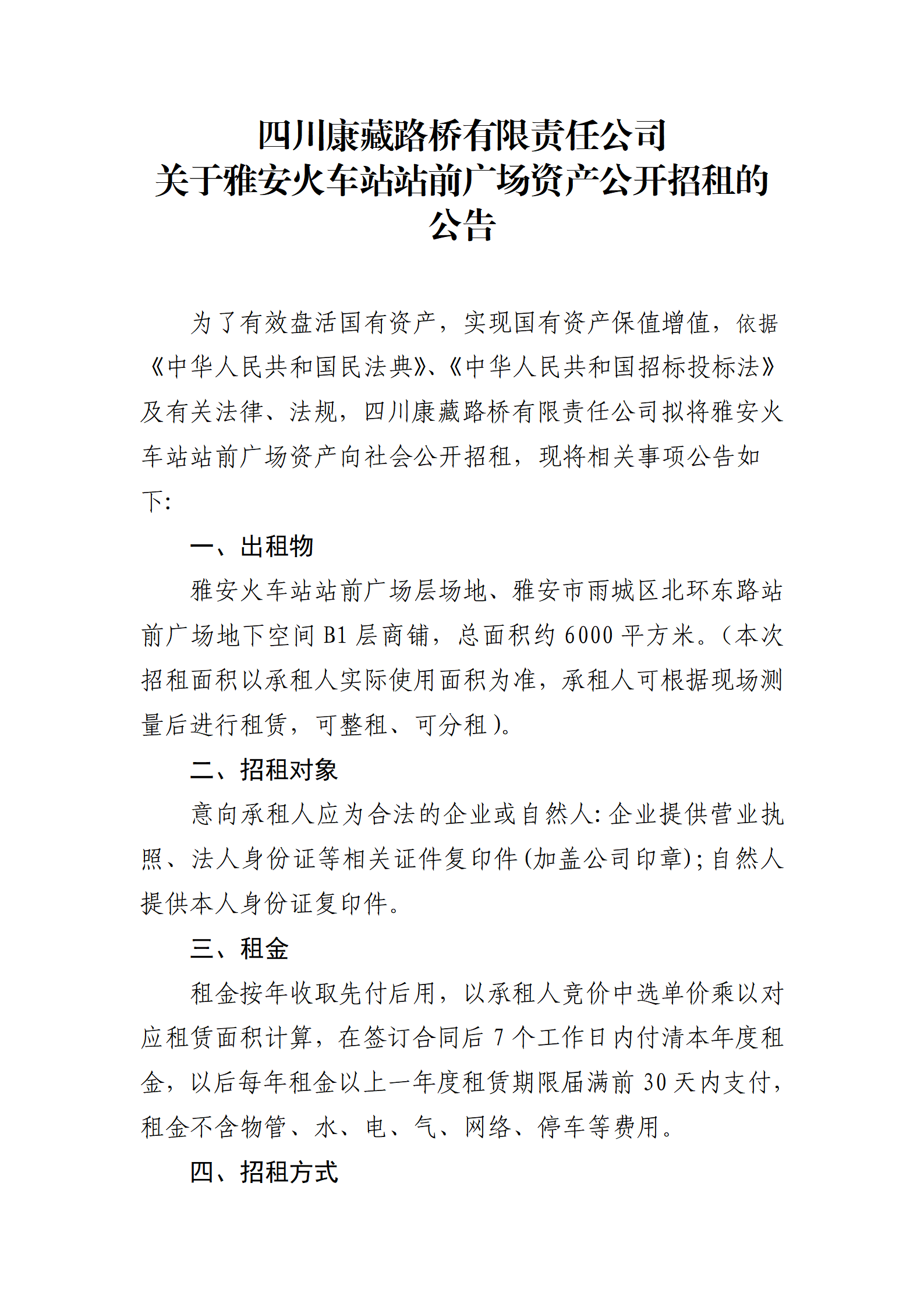 四川康藏路橋有限責(zé)任公司站前廣場資產(chǎn)招租公告