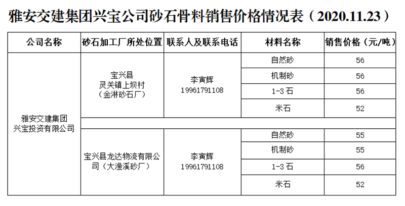 ÑŰ²½»½¨¼¯ˆF(tu¨¢n)ÅdŒš¹«Ë¾É°Ê¯¹ÇÁÏäNÊÛƒr(ji¨¤)¸ñÇé›r±í£¨2020.11.23£©