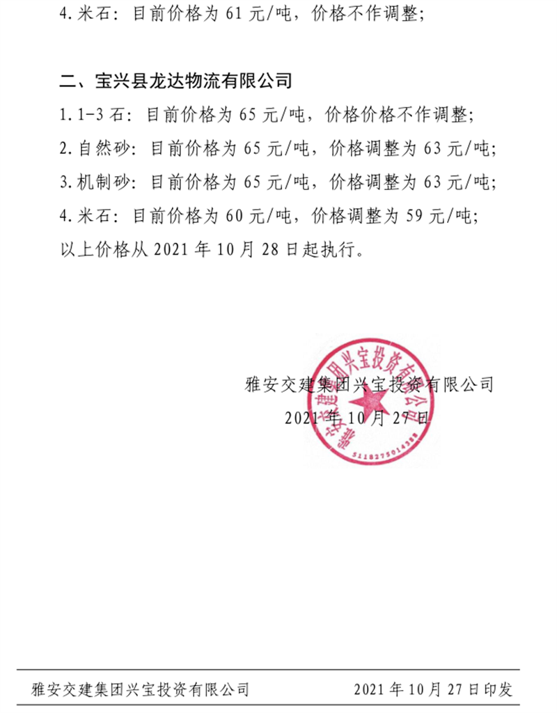 ÑŰ²½»½¨¼¯ˆF(tu¨¢n)ÔÆÊ¯¹«Ë¾êP(gu¨¡n)ÓÚÕ{(di¨¤o)Õû³ÉÆ·ÁÏäN(xi¨¡o)ÊÛƒr(ji¨¤)¸ñµÄ֪ͨ£¨2021.11.4£©