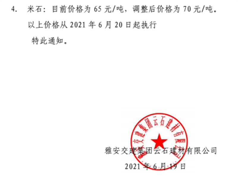 ÑŰ²½»½¨¼¯ˆF(tu¨¢n)ÔÆÊ¯¹«Ë¾É°Ê¯¹ÇÁÏäNÊÛƒr¸ñÇé›r±í£¨2021.6.20£©