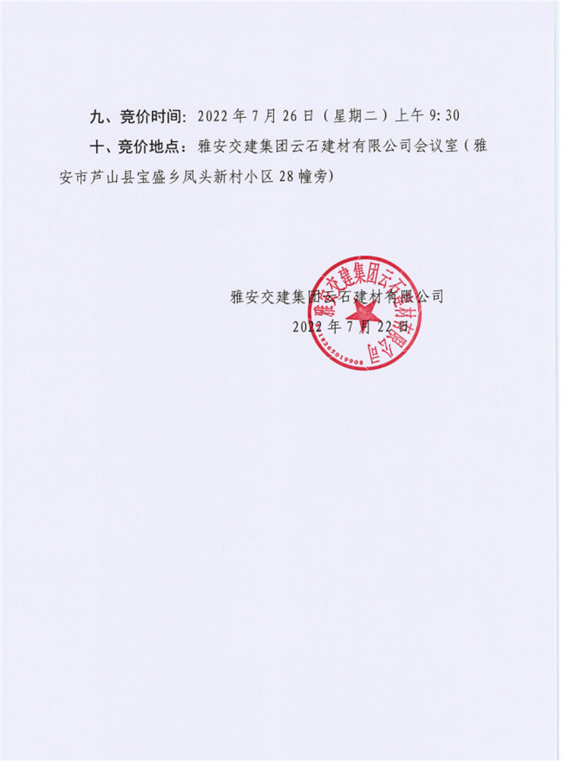 雅安交建集團云石建材有限公司成品料競價銷售公告