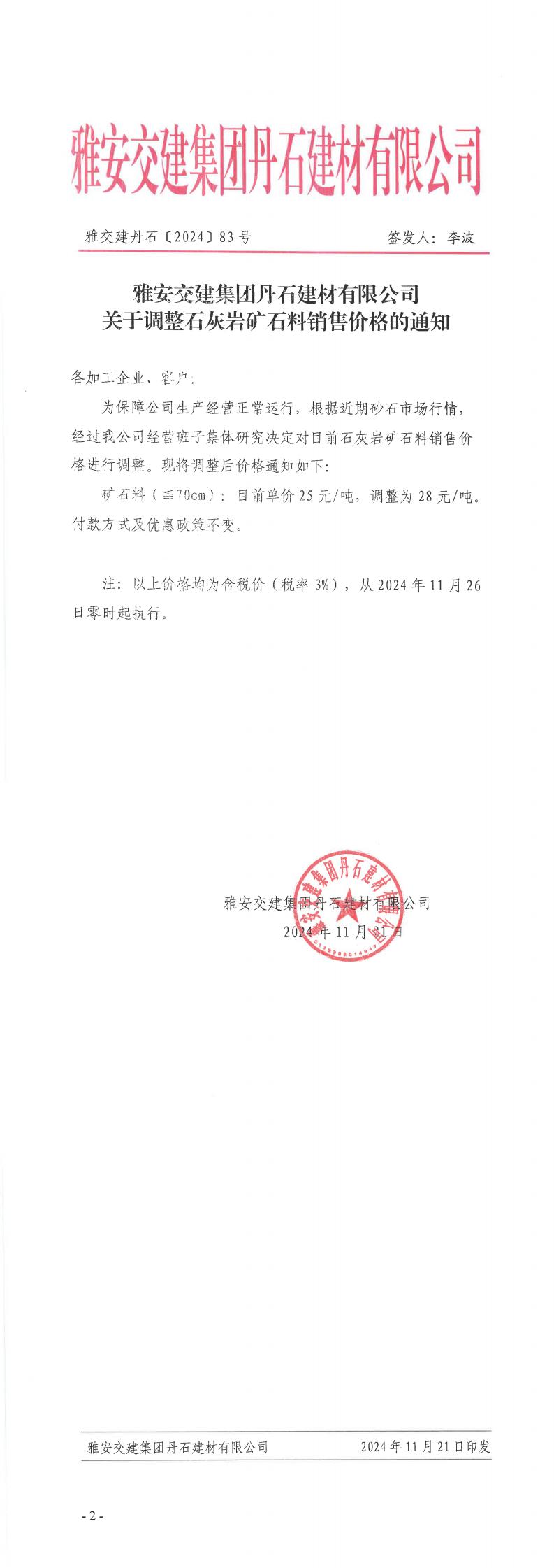 ÑŰ²½»½¨¼¯ˆFµ¤Ê¯¹«Ë¾êPÓÚÕ{ÕûµVʯÁϵÄ֪ͨ£¨2024-11-22£©